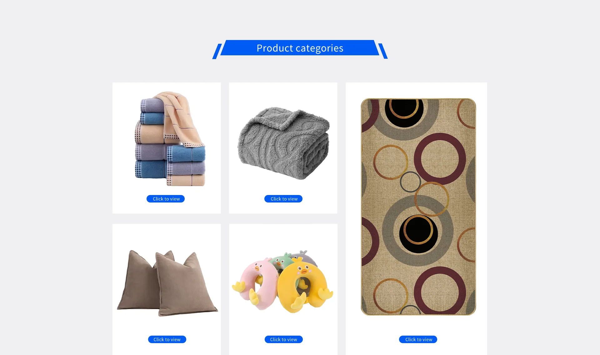 Main categories: Mats, Blanket, Towel, Cushion, U-neck Pillow